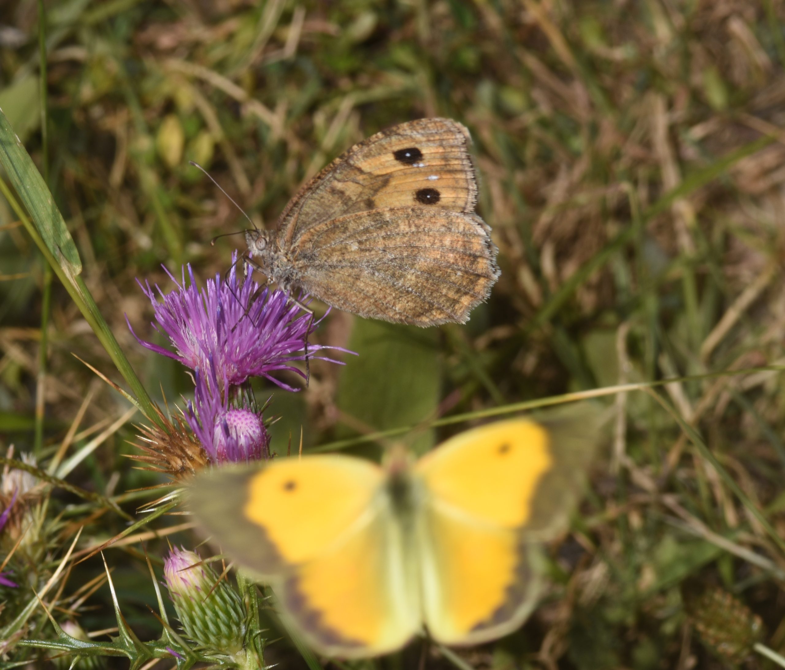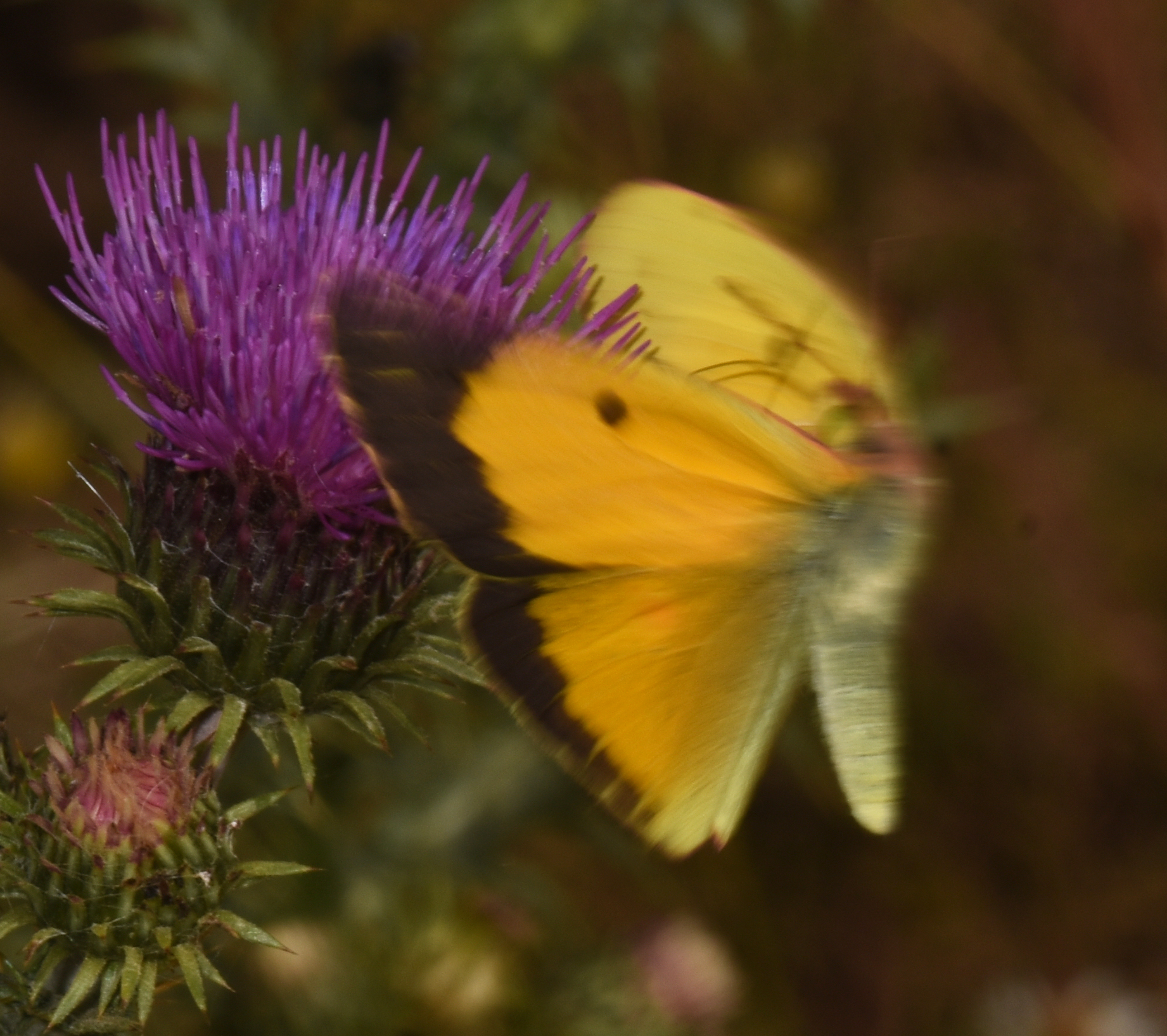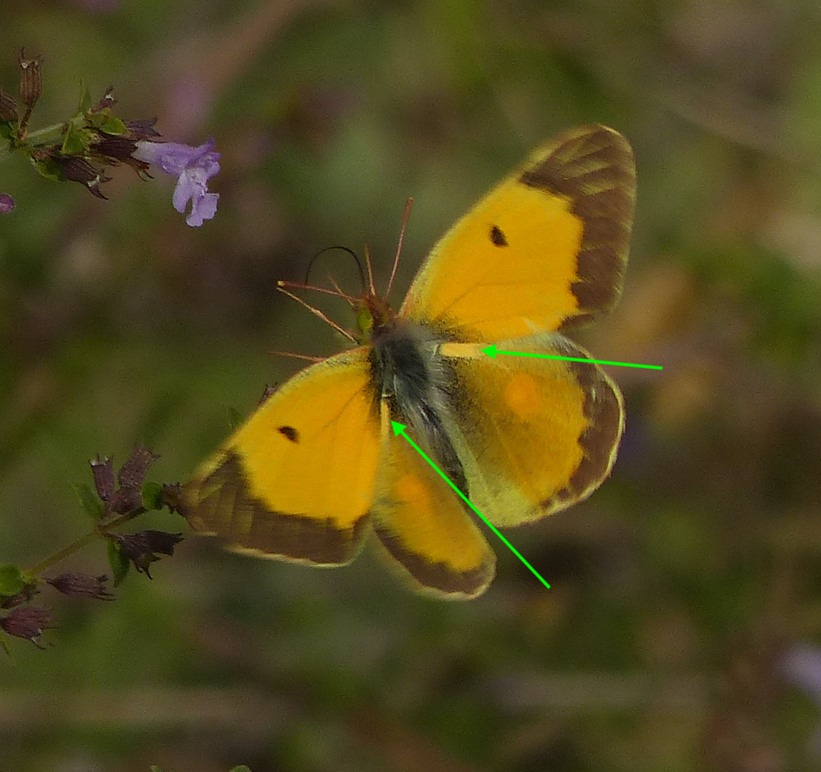 Δείτε παρακάτω κατα σειρά μία φωτογραφία του Colias crocea σε πτήση με ορατά τα androconia, δυο φωτογραφίες του Colias crocea σε πτήση χωρίς να φαίνονται τα androconia και μία άλλη φωτογραφία του Colias crocea, που βρέθηκε νεκρή στο στο έδαφος, στην οποία τα androconia επισημαίνονται με κόκκινο βέλος:
